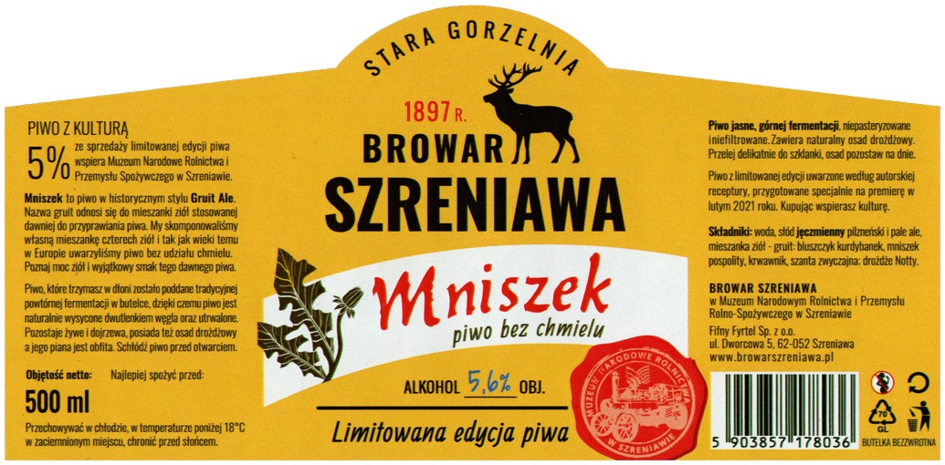 uwagi Browar rzemieślniczy działający w zabytkowej gorzelni na terenie Muzeum Narodowego Rolnictwa. Browar oferuje zwiedzanie z przewodnikiem, prezentację procesu warzenia oraz degustację piw warzonych na miejscu. Produkcja obejmuje piwa jasne, ciemne i specjalne, w tym historyczne style regionalne.