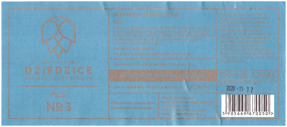 Browar Dziedzice (2020): Nr 3 Pils