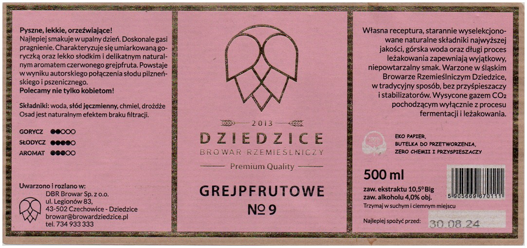 Browar Dziedzice (2020): Nr 9 Grejpfrutowe