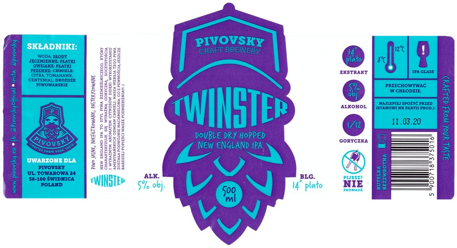 Browar Pivovsky (2020): Twinster Double Dry Hoped