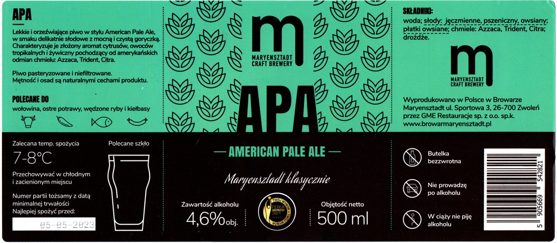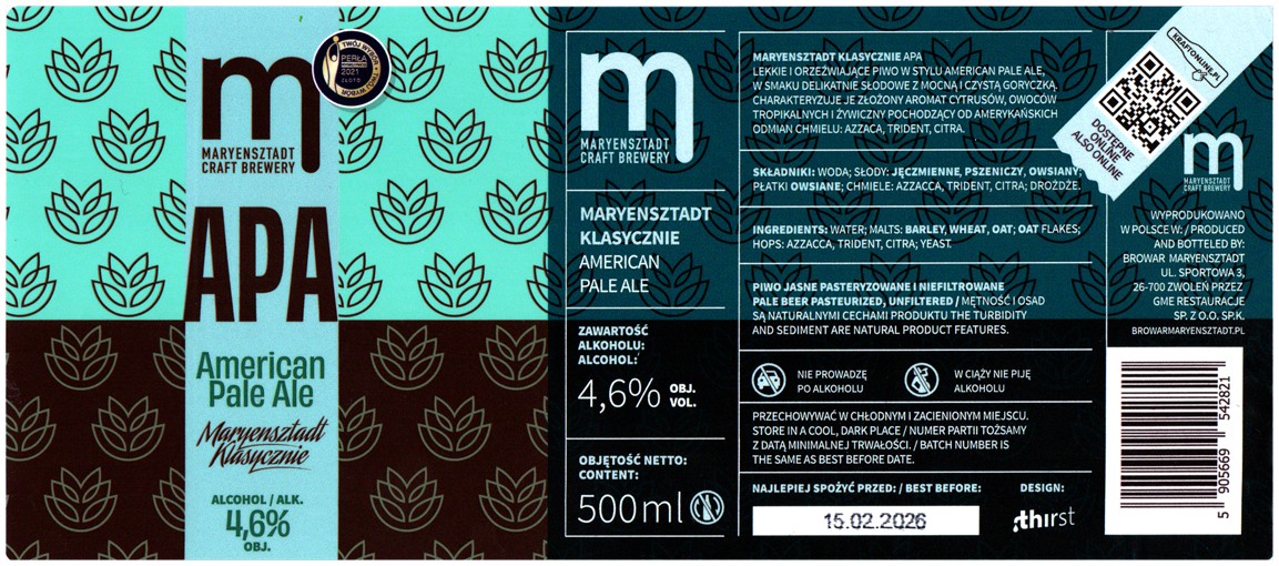 Browar Maryensztadt (2025): Maryensztadt Klasycznie - APA American Pale Ale
