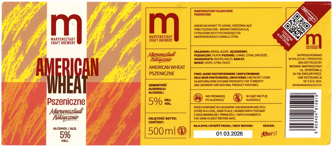 Browar Maryensztadt (2025): Maryensztadt Klasycznie - American Wheat Pszeniczne