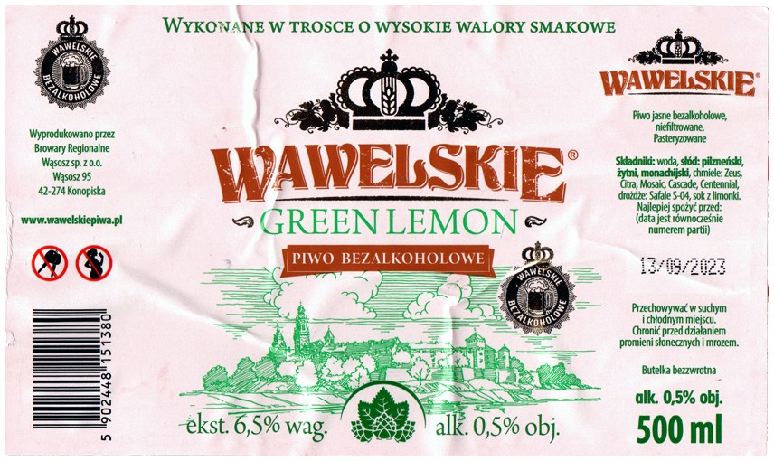 Wąsosz (2023): Wawelskie - Green Lemon Bezalkoholowe